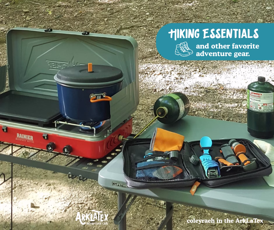 - You can find the list for my favorite things in the ten essentials you need for hiking in the ArkLaTex blog post.