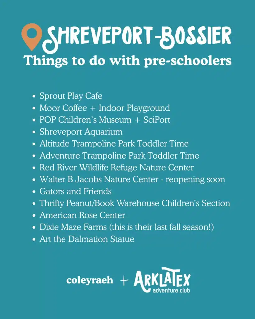 Things to do with toddlers and preschoolers in Shreveport-Bossier.